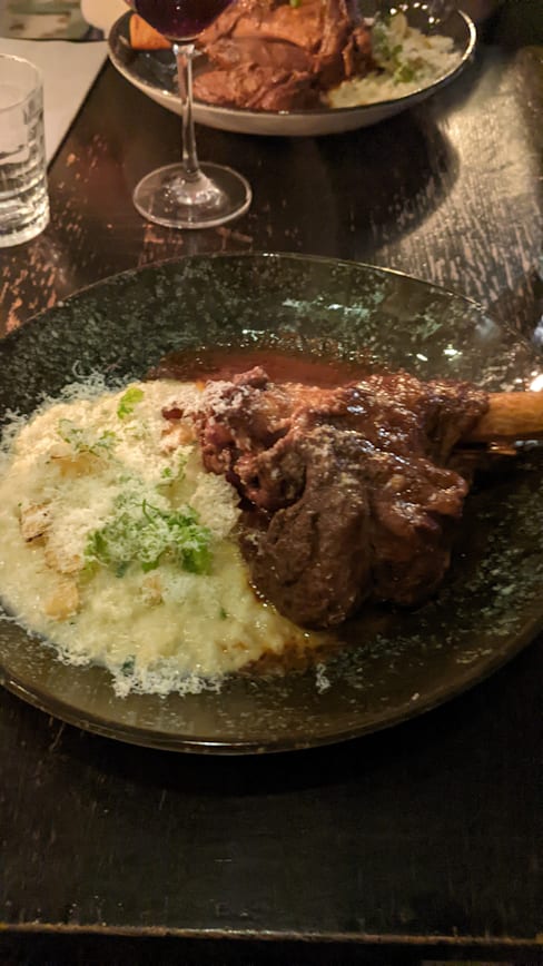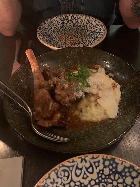 9/10The restaurant staff is very warm and welcoming. They also have good knowledge on allergies and gluten free options. The wine selection is quite wide. Not the best lamb but the risotto was very good.
