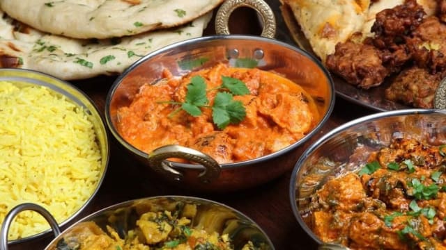 Agneau, poulet, crevettes mijotées dans un riz basmati avec 25 épices et servi dans une sauce.