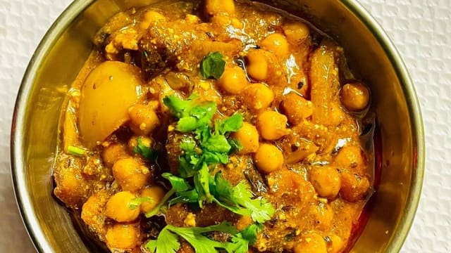 Spécialités de maison origine Punjab Ce plat est cuit dans une sauce à l'ail au gingembre, tomates fraiches et fines herbes