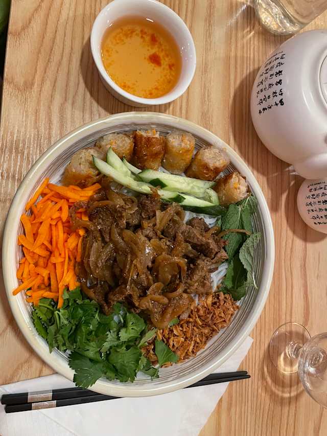 5.5/10All I can say is that the food was not bad, but it was also not any better different than similar restaurants in London or Washington, DC. The restaurant is clearly struggling, very few people there and only one server and one cook. They did not have several drink staples on the menu (regular coke and orangeina). Also did not have pho, I mean it is a Vietnamese restaurant. The waitress spoke no English, but was not even willing to slow down and work with my intermediate french. Very abrupt and uninterested in being helpful. Would not go back or recommend to anyone.
