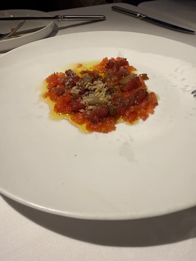 6.5/10too crispy service.. We also miss the relaxed class and self-confidence of a restaurant at this level that we are used to. I won't waste any more words on it, but I will mention that the wine we chose was very good. Just handling a delicate product like this requires the necessary knowledge that is lacking here…