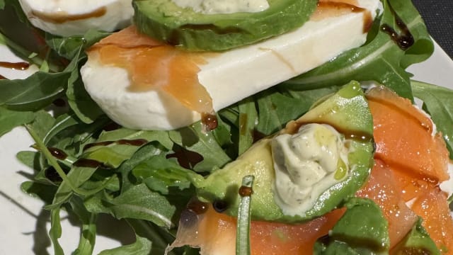 Queso mozzarella fior di latte. Rúcula tomate y aguacate.