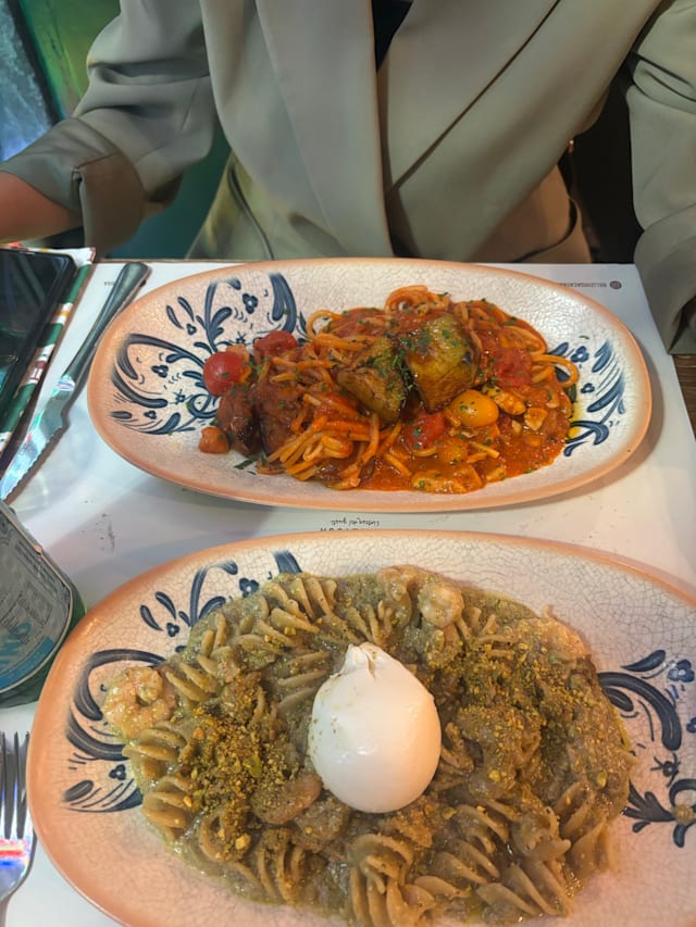 4/10The burrata salad was good. The swordfish pasta was fine. The pesto pasta was flavorless. The texture of the pasta was very strange. The Tiramisu was like pudding. The chocolate cake with gelato was pretty good though. Overall, very disappointed, did not match the quality of the other resturaunts we had tried in Sicily. I have had better Italian food than this at home in the states, which I would absolutely not say about the two resturaunts we tried in Palermo. This was the only dinner we had in Catania and we regret it!