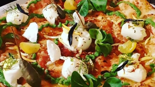 Pistacchio, alici, scorza di limone, pepe rosa, mozzarella