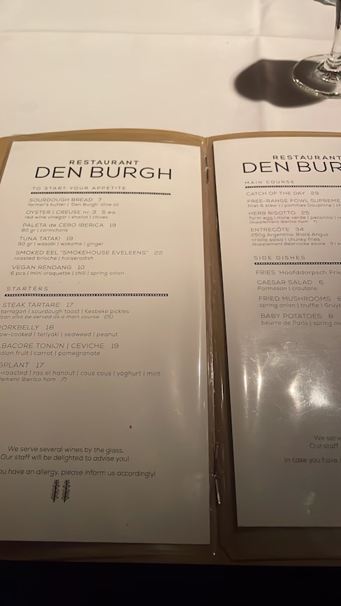 10/10Celebrated husband’s birthday tonight at Den Burgh. Service was excellent and the food was ridiculously delicious!!! Memorable first dining experience for me and my family ❤️