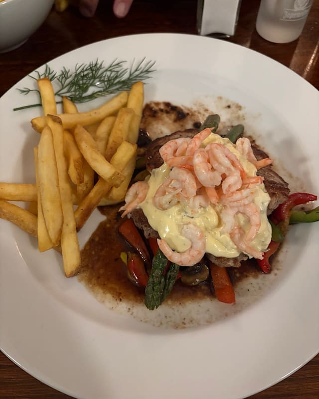 6/10Having had dinner here many times before, we were a bit disappointed to find out that the restaurant part was closed, and we were seated in the sport pub area, with huge tv screens everywhere and loud kids running around the place. Service was swift and friendly, and the food is good for the price. Though the medium steaks was served more than well done. I5l