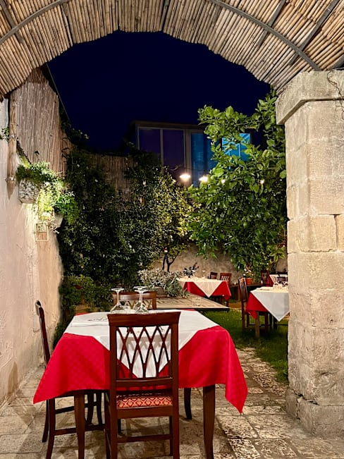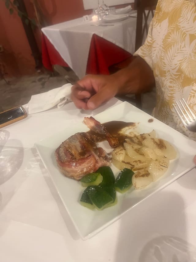 10/10Lovely evening sitting outside in the courtyard garden. The food was great especially the antipasto ( swordfish and white bait exceptional) and plentiful! Desserts delicious. Service very attentive.
