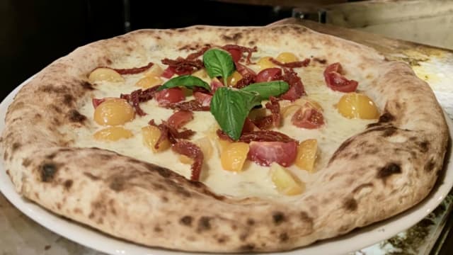 Fior di latte, prosciutto Crudo Stagionato D.O.P, pomodoro secco, scaglie di parmigiano reggiano