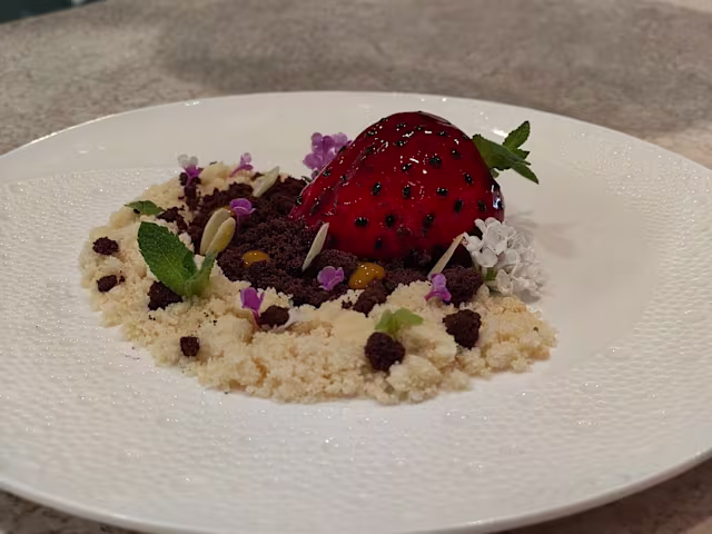 - Gnocconero ripieno dí cacio e pepe, menta, lime e pepe rosa
