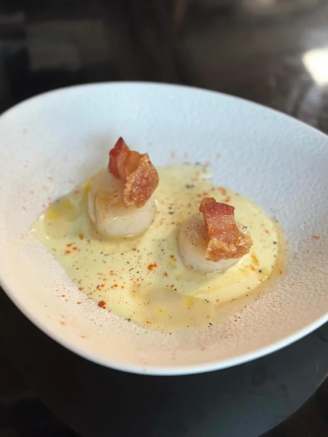 - Vieira a la plancha sobre parmentier de foie y torrezno