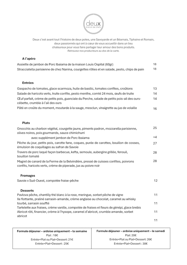 Un grand merci Al Abi pour ce retour si élogieux ! Nous sommes ravis que vous ayez apprécié la générosité de nos plats ainsi que les accompagnements raffinés qui les accompagnent. Vos mots nous touchent et toute l’équipe sera heureuse de vous accueillir à nouveau chez Deux pour vous faire découvrir encore plus de saveurs. Tiphaine, Romain et toute l’équipe de Deux.