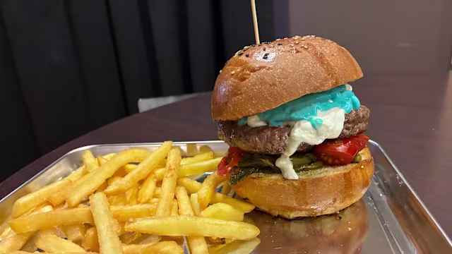 - Carne 220 gr, cheddar, pomodoro, insalata, bacon salsa BBQ
