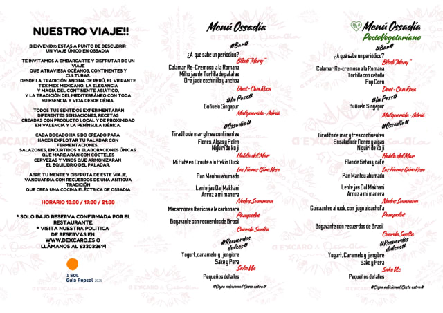 MENÚ OSSADIA sin bebida (Mesa compartida) €109 per guest