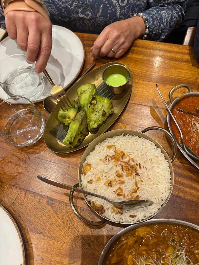 Paneer stir-fried with bell peppers, tomatoes and a punchy kadhai masala-spicy, aromatic, and full of texture. Served with a small portion of rice.