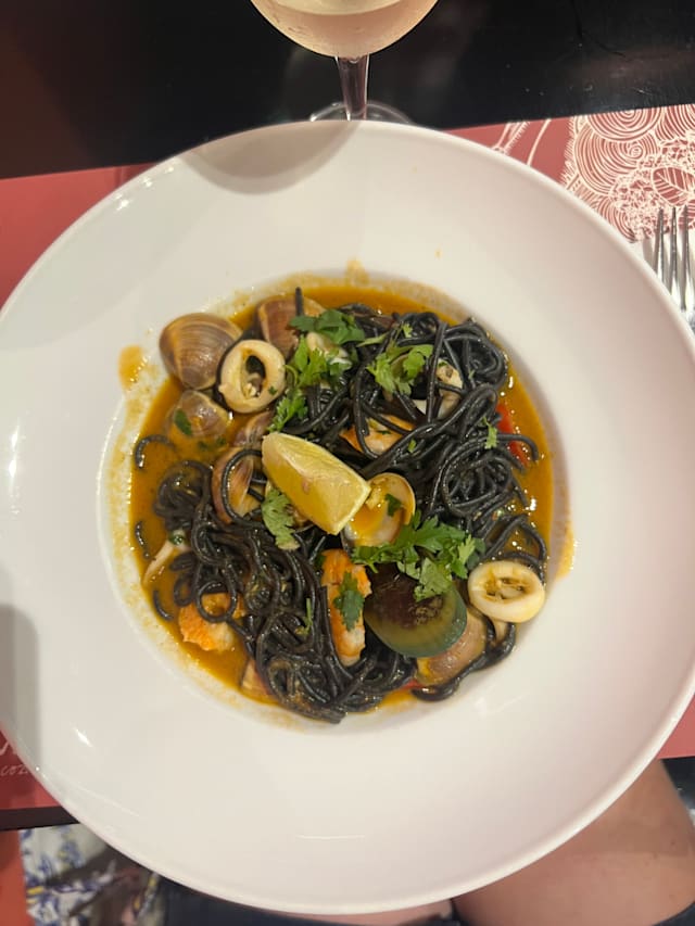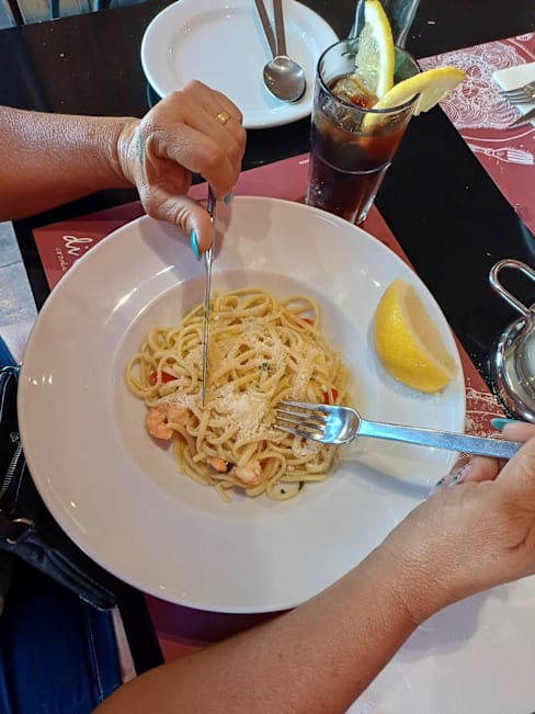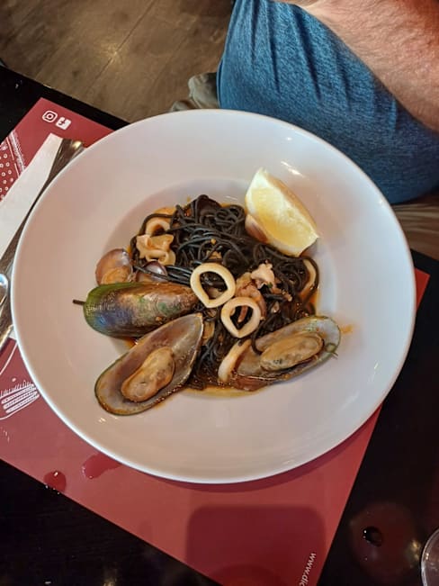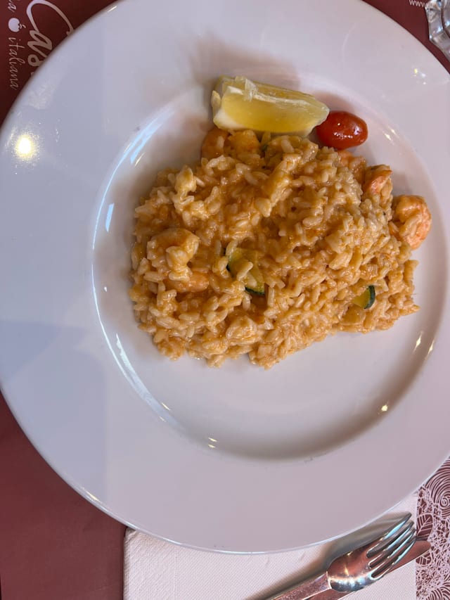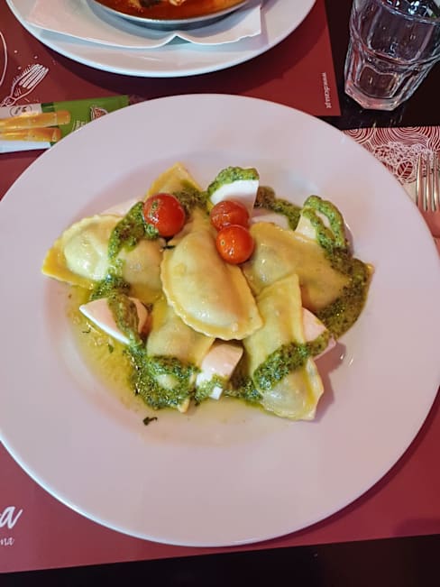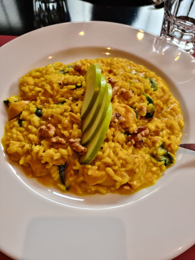 8/10There is good space between the tables, allowing for a quiet conversation. Nice atmosphere, quite better than in a standard pizzeria. Attention is given to the decor and the toilet space. Out a quite large menu we had papardelle (very good and of a good size) and risotto . . . which was good but not cooked as a risotto but rather as rice with xxx. It might have been arborio rice having been cooked as a regular rice. Quite a bit misleading thus . . . Very reasonable prices (well-priced wines as well), even more so with a Yums discount making it very affordable.