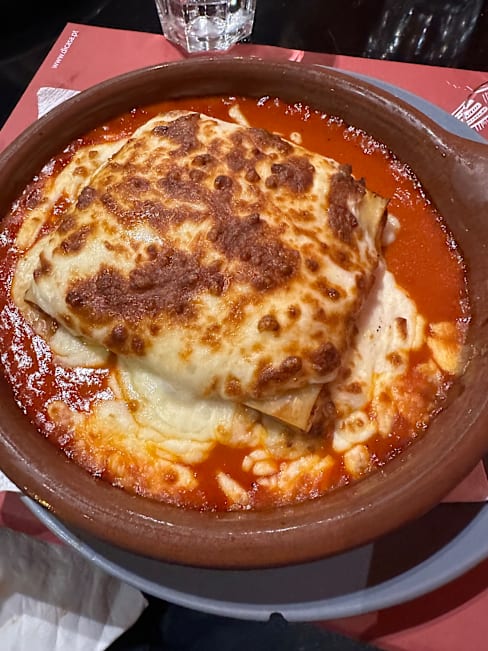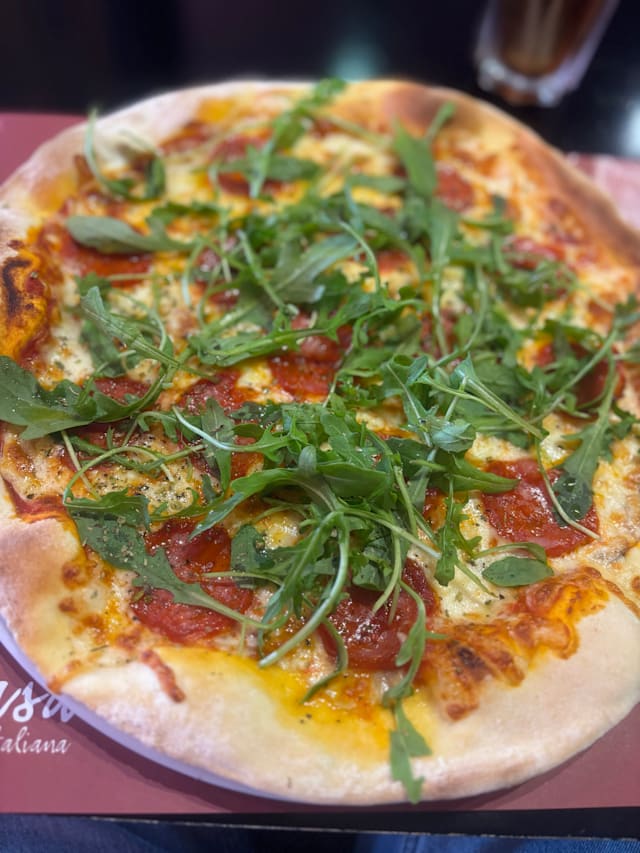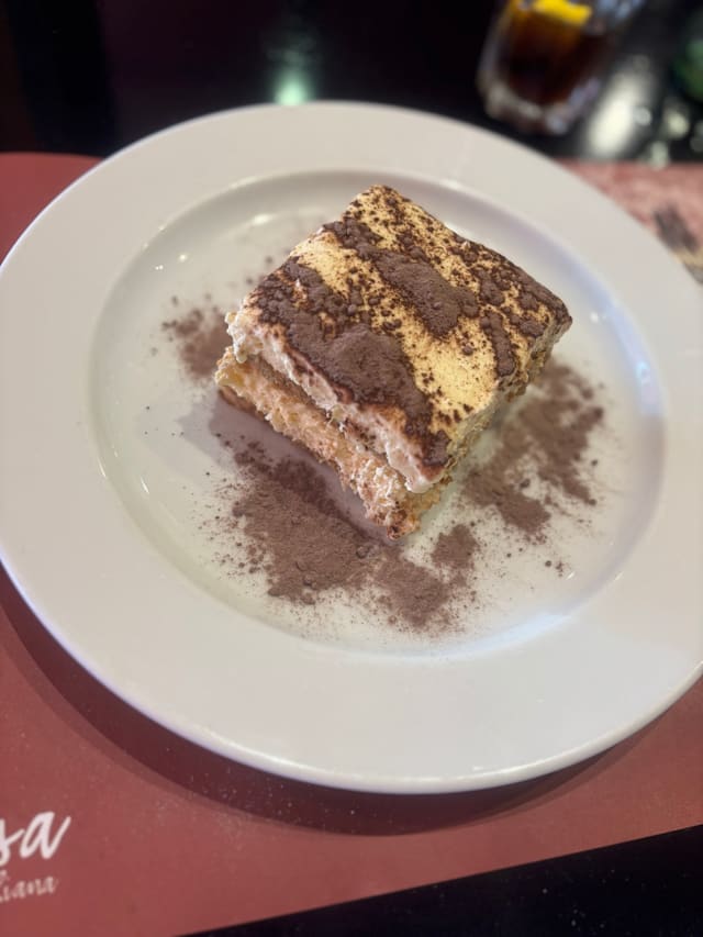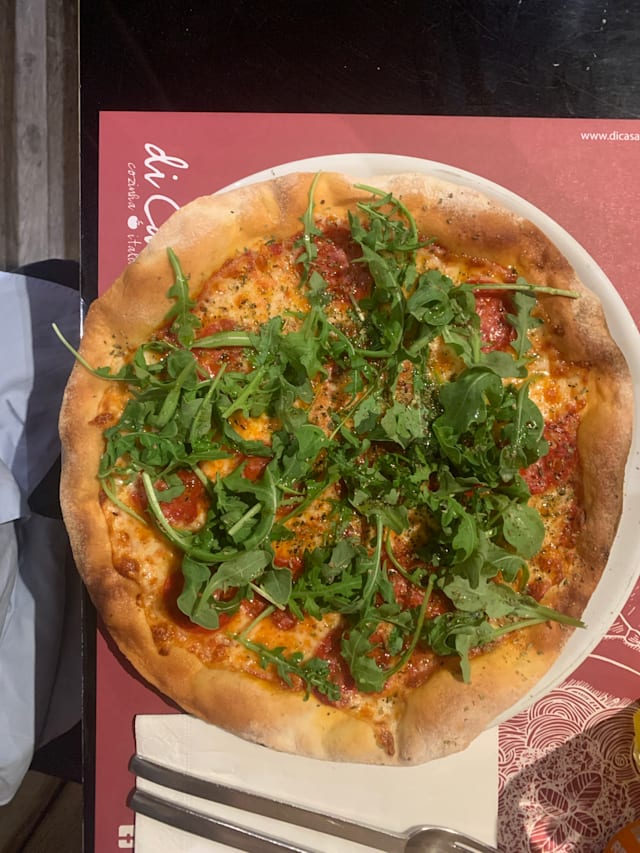 6.5/10Di Casa has the kind of oversized, empty space that feels more hollow than inviting. The pizza dough is light but bland, lacking any real flavor or seasoning, though the toppings were decent. The wine was off, and when I asked to compare two options, they brought half glasses of each without table service: a bit suspicious in my opinion. If it weren’t for The Fork discount, I wouldn’t have bothered. The white chocolate cannoli was light and tasty, but far from traditional (made with industrial filo pastry and filled with white chocolate instead of ricotta). The whole experience felt outdated, from the décor to the staff. It’s the kind of place that gives off the vibe that the owners are tired and don’t care anymore. There are definitely better options nearby, and I won’t be returning.