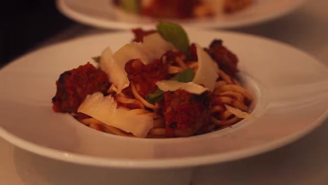 - Spaghetti, tomate, boulettes de bœuf et parmigiano