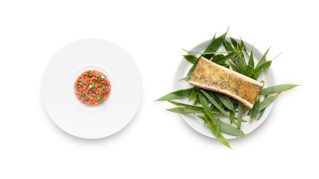 - Branzino, vongole, emulsione allo scalogno e Martini