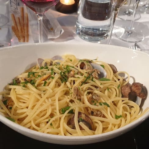 4.5/10I was really excited to try this place. However my calamari lacked flavor, was overcooked, and was in general rubbery. I can honestly say I've never had worst calamari. Additionally, the clams in the garlic sauce with linguine was also bland, and while I waited about 10 mins to try to flag down a waiter for salt, I just gave up and ate the bland linguine. We paid almost 70 euros, (a coke was 9 euros), for clam linguine, calamari and a coke, and this was probably the worst /most expensive meal we've had in paris thus far. So disappointing. Wish I had read more of the reviews...