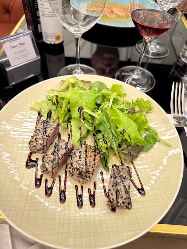 7.5/10Being so close to the Termini railway station isn't the best for a good restaurant. Even so we really appreciated Diana's Bistrot. The 20ies interiors with mirrors and lights is unusual but very elegant. The service was good and we had great food and good vine too. To recommend it!