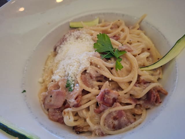 9.5/10Really nice experience with my family. All my family were happy with dinner. We order pizza, pasta fruto di Mare and carbonara spaghetti and child menu. All was a good option. We spent 72 euros 4 adults and 1 baby (2years old). Also ordering entrance and repeating couple drinks and of course 2 coffee at the end. Service was good. Place is pretty nice, clean and elegance. We enjoy 30% off booking with this The Fork app.