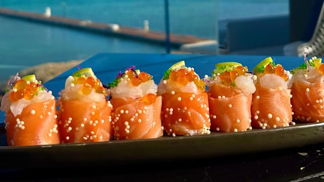 16 pezzi di sushi a persona e drink a scelta • 4 hosomaki classici • 2 hosomaki fritti • 10 uramaki creativi