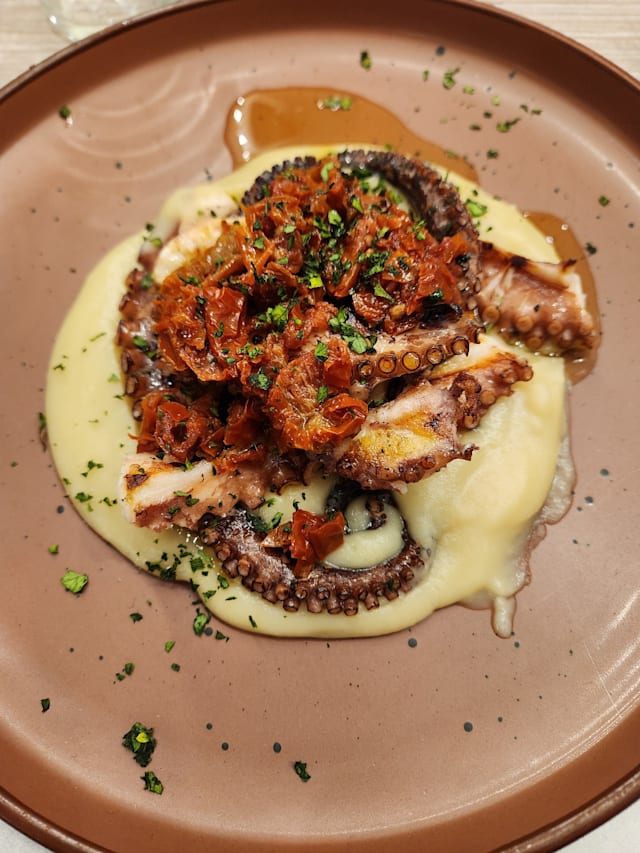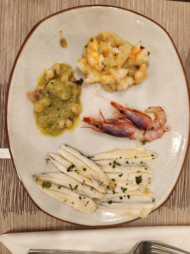 Starter of seafood parmigiana was pleasant but not full of flavour. Mixed grilled fish was fabulous, no complaints at all. Disappointed at no desserts available but overall a great value meal with nice wine at a good price.