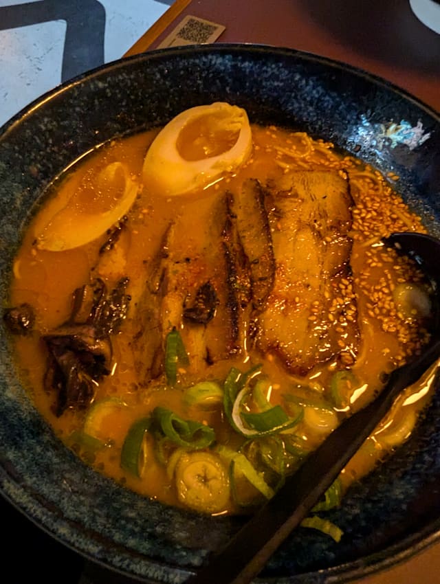 8.5/10Exceptionally engaged and caring service more than made up for the somewhat uninspiring food. While we liked the basic concept, the food was just too heavy on salt and fat. We had some okay Ramen, just a little too fatty, and Edamame. Those were covered in chili oil, we couldn't eat them. A good place to go if you're planning on a night of drinks and want some salt and oil in your stomach to prevent a hangover. By far the best part of the experience was our server, genuinely concerned, knowledgeable and super friendly!