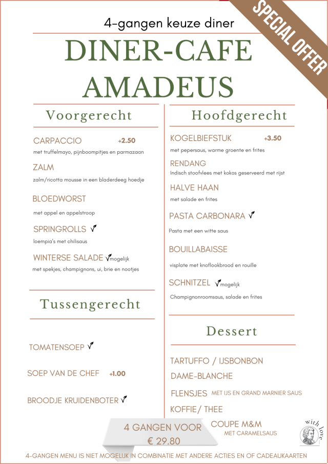 Dinercafé Amadeus is een gezellige horecagelegenheid in het centrum van het mooie stadje Valkenburg aan de Geul.