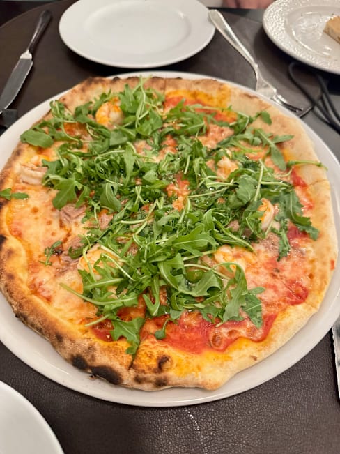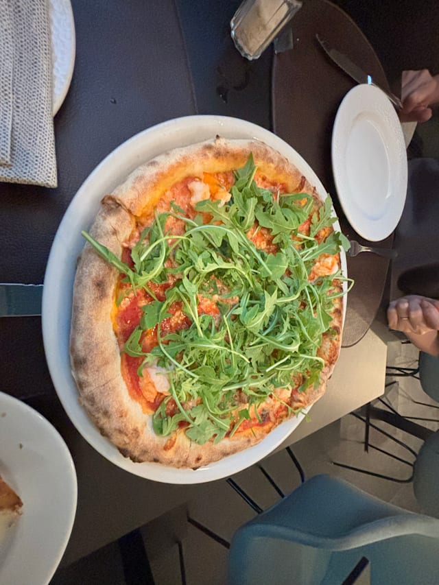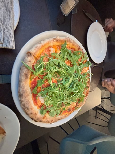7.5/10the food was fresh. salad was exceptionally good. pizza was less unique, but still ok. Service was really great. Guys were polite and friendly. We didn't like the style of the restaurant, it was neglected and dark. One of the toilets was out of service, the other one had the push button broken.