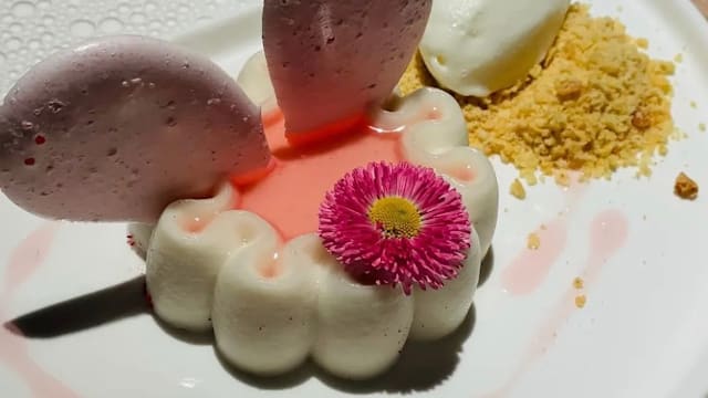 Riso sushi avvolto in alga nori, guarnito con ricciola cruda frecsa, scampi delicati e una salsa agrodolce al passion fruit. Un piatto raffinato dove la dolcezza del pesce incontra l'esotico della frutta tropicale.