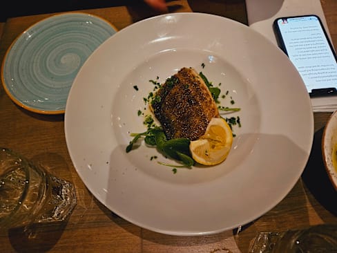 9/10We booked a table for 8 to celebrate a birthday and everything went very smoothly. One of the waiters helped me organise the coffee and cake while the other waiter took our orders and cleared the tables. The time between the appetizers and the main dishes was excellent. Our table was kept clean and tidy, our water refilled and I could tell that the waiter had an eye on us in case we needed anything. I'm general the service was fast and efficient. I think the food needed a bit more seasoning but the mood was more than satisfying; the music was loud enough to hear but low enough for us to communicate. All 8 of us were very happy with everything and our evening was highly satisfactory.