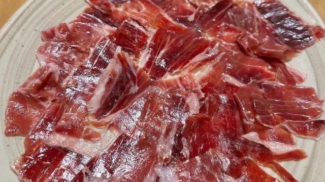 Un plato tradicional con un toque de elegancia. Disfruta de la combinación perfecta de huevos rotos con yema cremosa, acompañados de crujientes patatas y coronados con finas virutas de jamón ibérico. Una explosión de sabor ideal para compartir o deleitarte en solitario