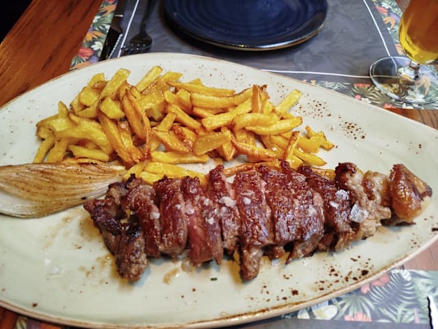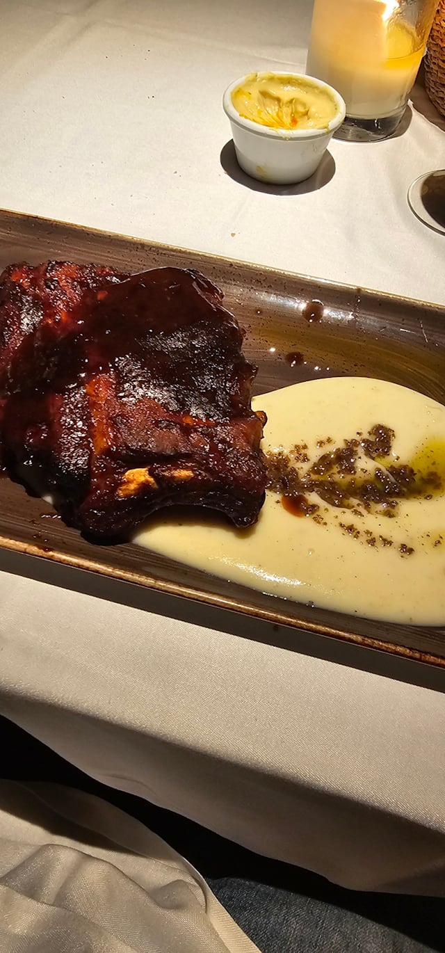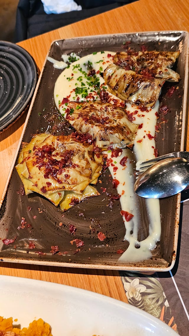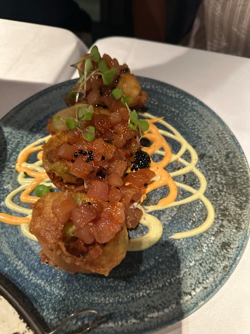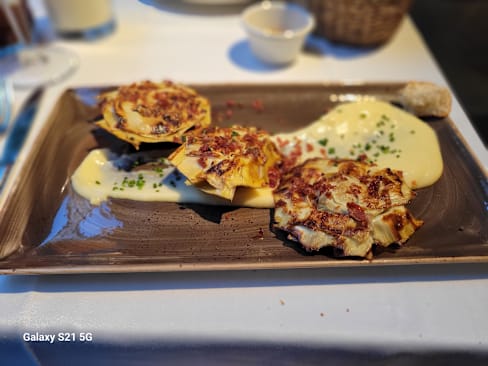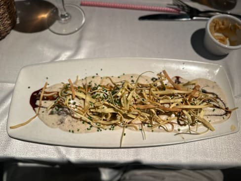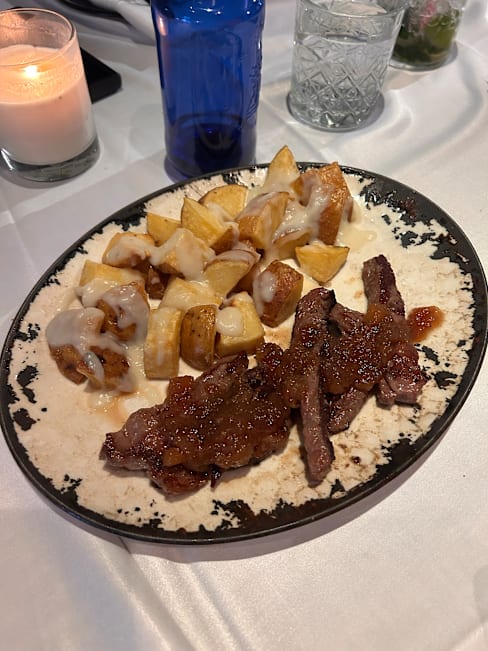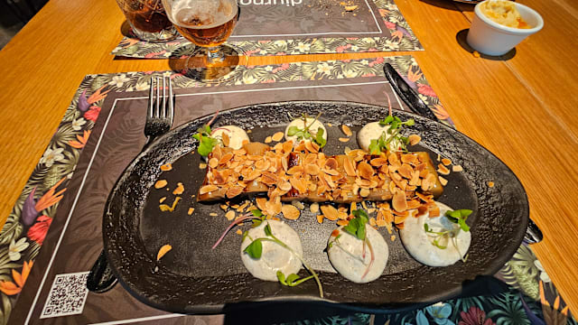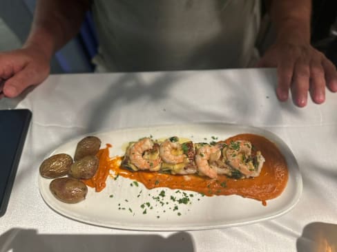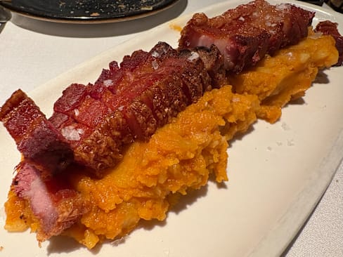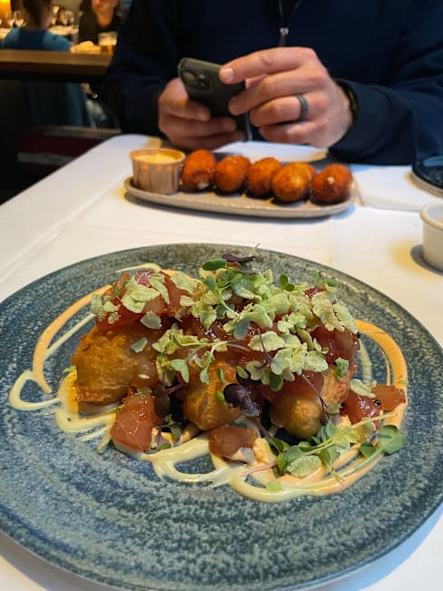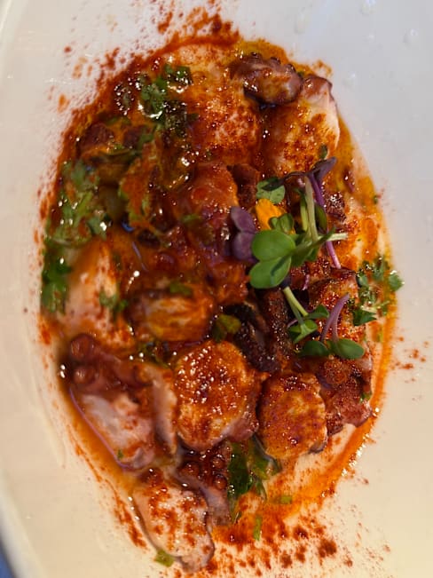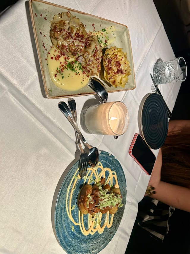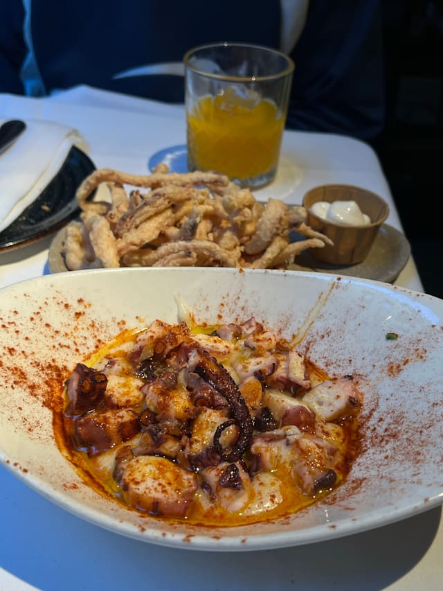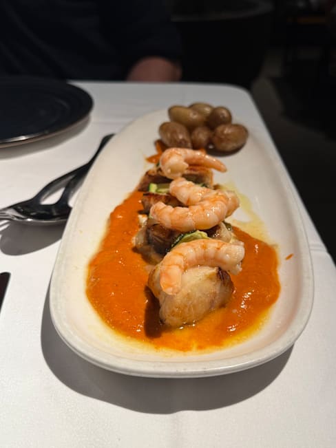 9/10Warm décor set the stage for a memorable meal. We started with perfectly crisp patatas bravas and tender grilled octopus with just the right char. The grilled monkfish was delicate and well-seasoned, and dessert — a warm apple tart with silky Madagascar vanilla ice cream — was pure comfort. Service was mixed: our server was skilled but a bit dry, while the rest of the staff were friendly and welcoming. Beautifully presented food, inviting atmosphere, and enough charm to make us want to return.