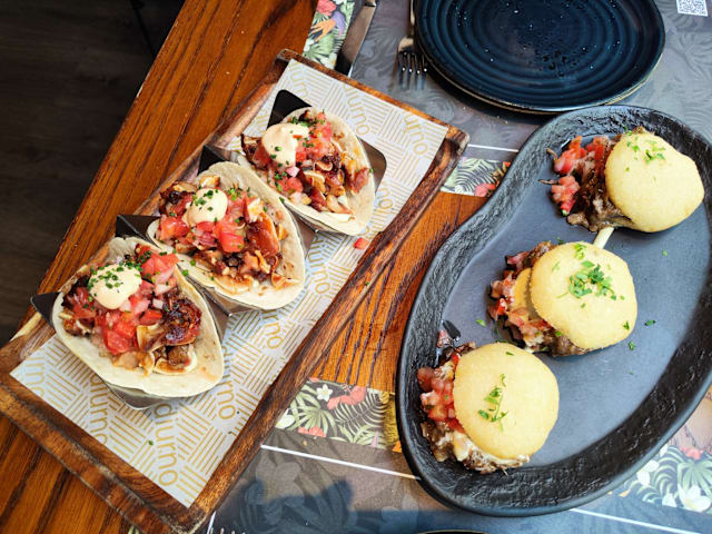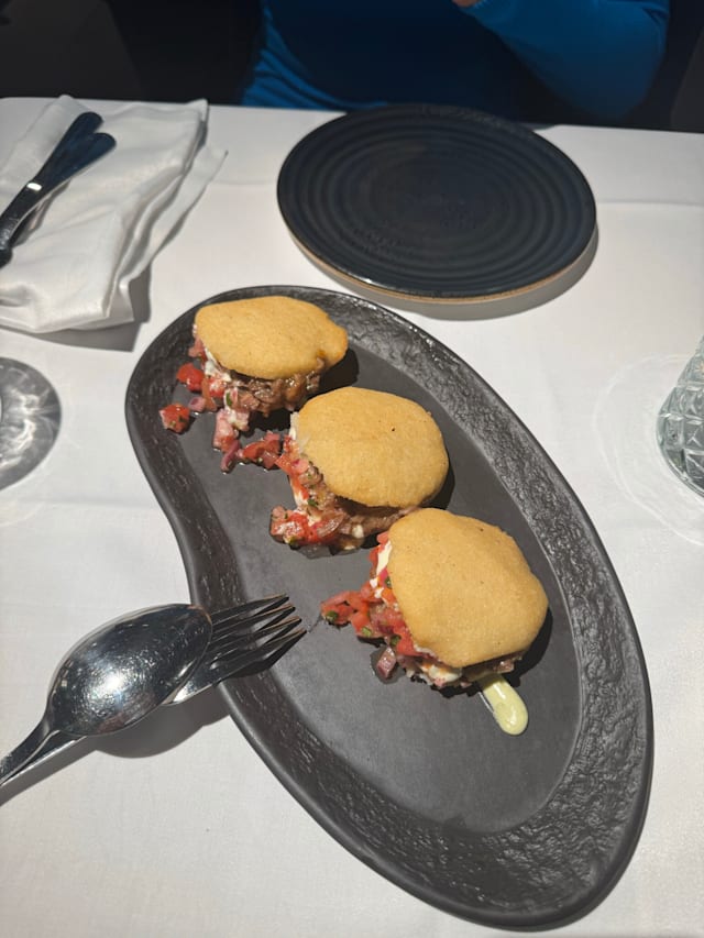 10/10+4Hands down one of my favourite restaurants in Madrid. Very cool location with excellent ambience and attractive decor; the lighting is low but more than adequate, good service, and while the restaurant is moderately sized, it still feels quite cosy and intimate. And the food was INCREDIBLE. We went all out and ordered the oxtail arepas and crispy pork belly for appetisers, the octopus and iberico pulled pork cannelloni for mains and the millefeuille with Greek yoghurt mousse for dessert — and I recommend them ALL! Will *definitely* come back next time I am in Madrid.
