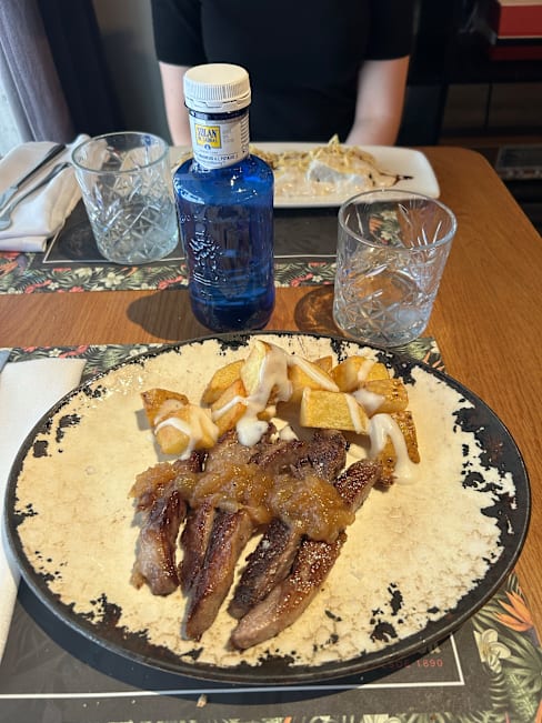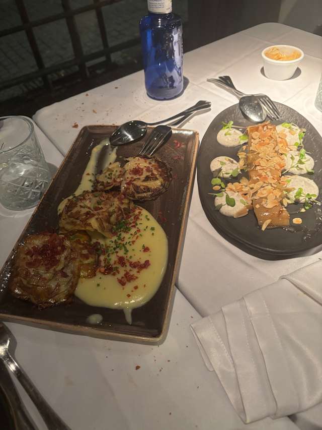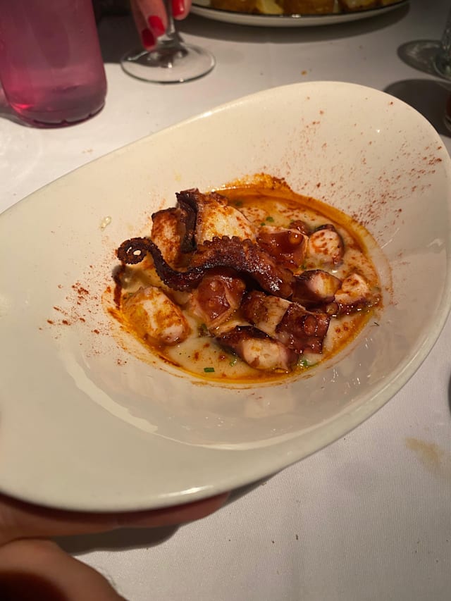 9/10Warm décor set the stage for a memorable meal. We started with perfectly crisp patatas bravas and tender grilled octopus with just the right char. The grilled monkfish was delicate and well-seasoned, and dessert — a warm apple tart with silky Madagascar vanilla ice cream — was pure comfort. Service was mixed: our server was skilled but a bit dry, while the rest of the staff were friendly and welcoming. Beautifully presented food, inviting atmosphere, and enough charm to make us want to return.