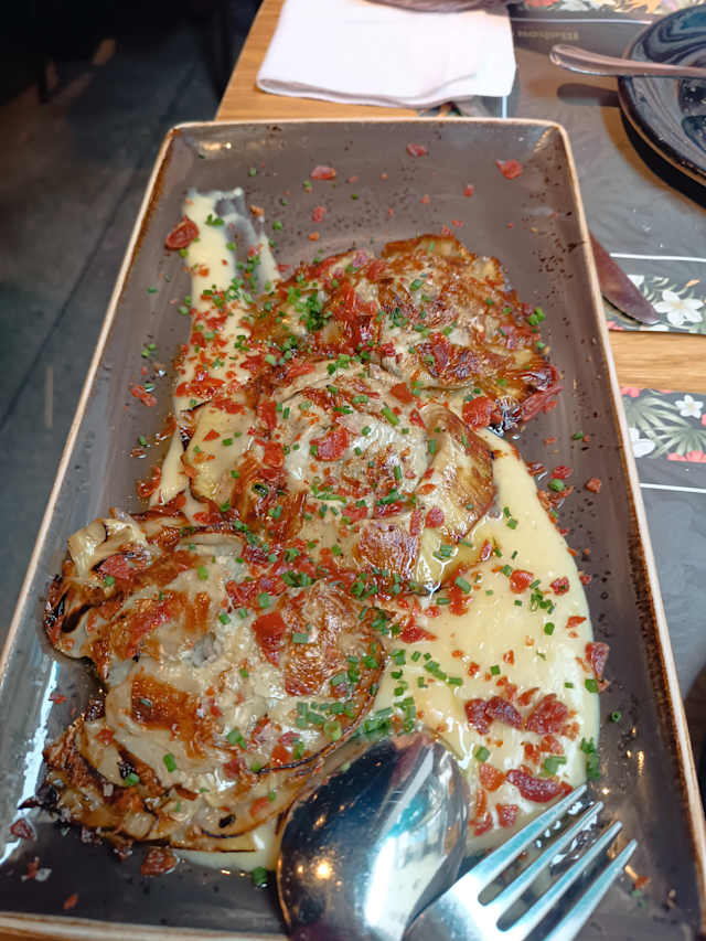 7.5/10We dined here and had 2 appetizers and 2 mains. We had dined at another restaurant the night before Mercado De La Reina which we didn’t realize until sitting down that this was the same chain and had almost identical menus. I had the octopus in potato cream and found it almost like a thick soup, didn’t love the dish. Had the fried avocado to start and it was good. My husband had the croquettes and the pork belly tacos he said they were both 7/10. Price was a bit high for the value.