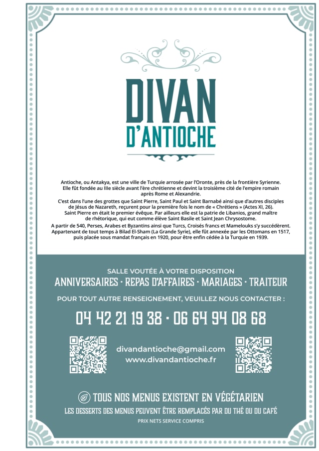 Divan d'Antioche is rated 8.7/10.TheFork users have rated accordingly in the following categories: