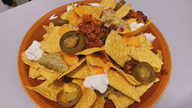 Chili con carne scottona in una piadina di mais con formaggio originale cheddar inglese, salsa