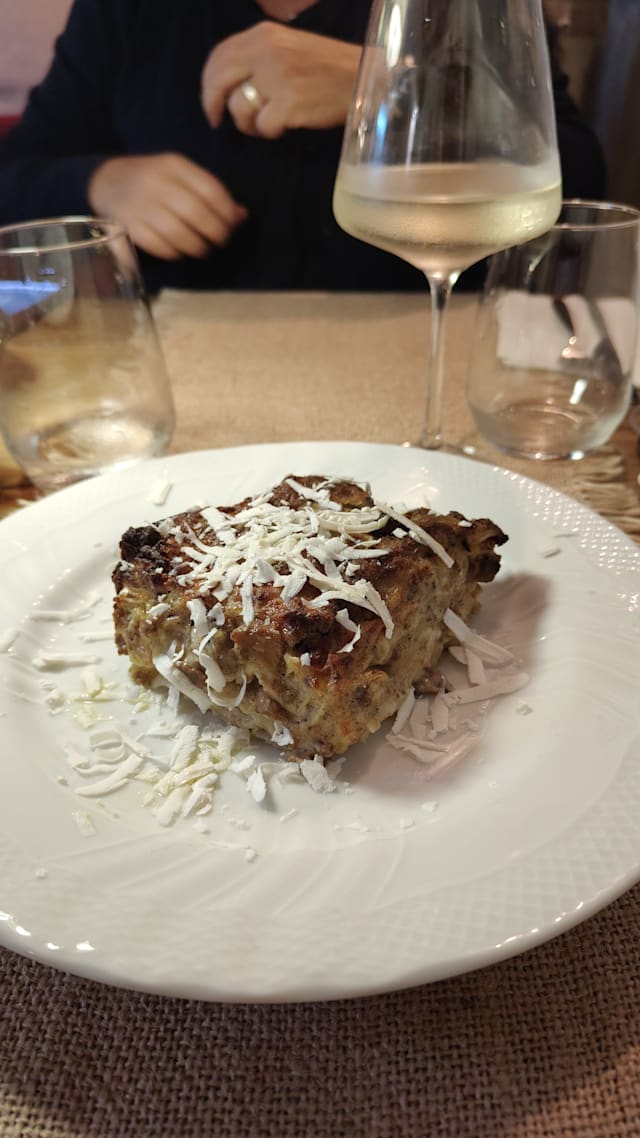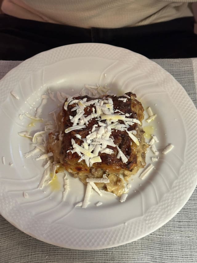 Millefoglie d’abruzzo con ragù bianco di manzo, porcini, tartufo e ricotta salata
