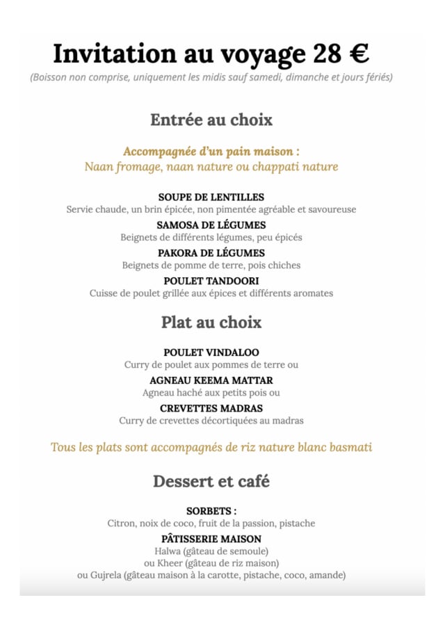 10/10This gastronomique restaurant within 15 min reach from Chattelet-Les-Halles (RER A a Rueil Malmaison) was a true and pleasant experience both in terms of the quality of la cuisine and professional, top standard and pleasant service.Espeially due to difficult timing (Friday, 30th of December). The tastes of India were one of the best I have had in years now. The menu comprises a highly recommended section de la cuisine from les Antilles (unfortunatelly the respective Chef has left for holidays in August and is still not back :-D). I will be certainly returning there both for dejeuners and dinners.
