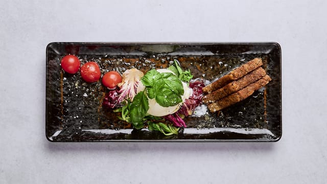 Toasted rye bread, mixed salad, horseradish cream