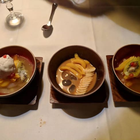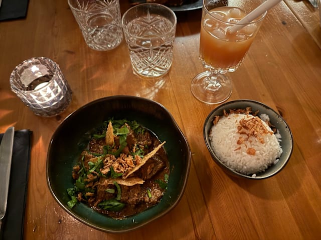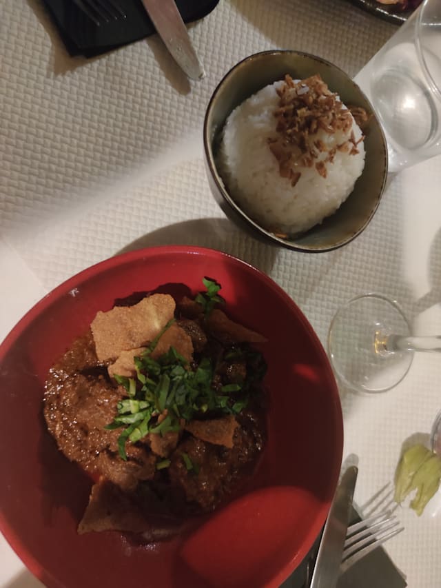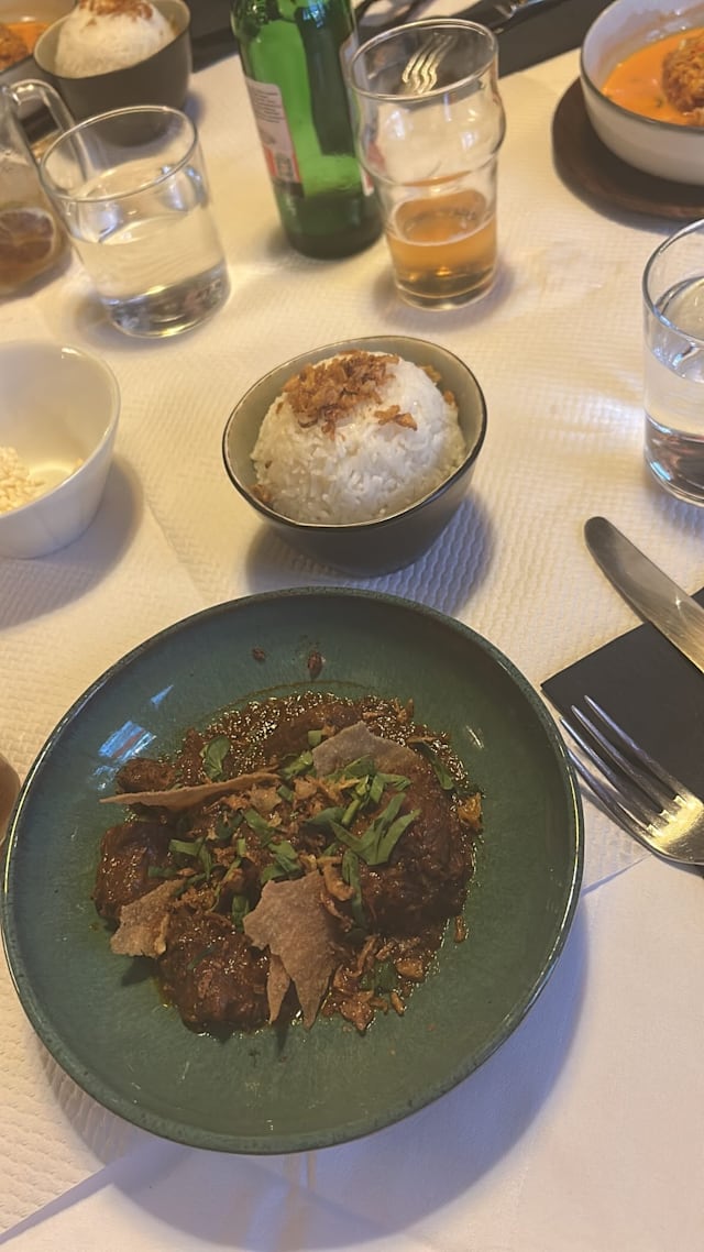 8/10Food: Nice food. Rendang, Pepes Udang, Lumpia, Soto Daging and Sambel Terasi really taste like authentic in Indonesia. As for Gado-Gado and Ketoprak, both taste almost the same and could actually include more types of vegetable. As for dessert, Kolak taste great and is recommended for dessert! But less for Agar-agar or Ice Fruit - it’s however include exotic fruits which people may want to try. Service: I booked it for my family of 7. I arrived in advance and was welcomed with a complaint from the restaurant because the reservation was rescheduled (indeed I rescheduled it once) but apparently it appeared on their side that I rescheduled it 5 times. Maybe a bug from La Fourchettte apps? However, it was not the best way to welcome guests.