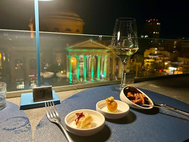 10/10excellent restaurant with Great service and an amazing view at the theatre in Palermo. I can highly recommend this restaurant if you are looking for a special dinner!