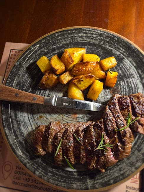 10/10Great lunch at this bistro. We had a lovely avocado salad with various vegetables, focassia (sublime!), P&C pasta and steaks, which were excellent! The tiramisu at the end was excellent. Manuel the waiter , and the rest of the team were super helpful, and even organised a cup of tea for my mum (not always easy to find in Rome). Would definitely recommend.