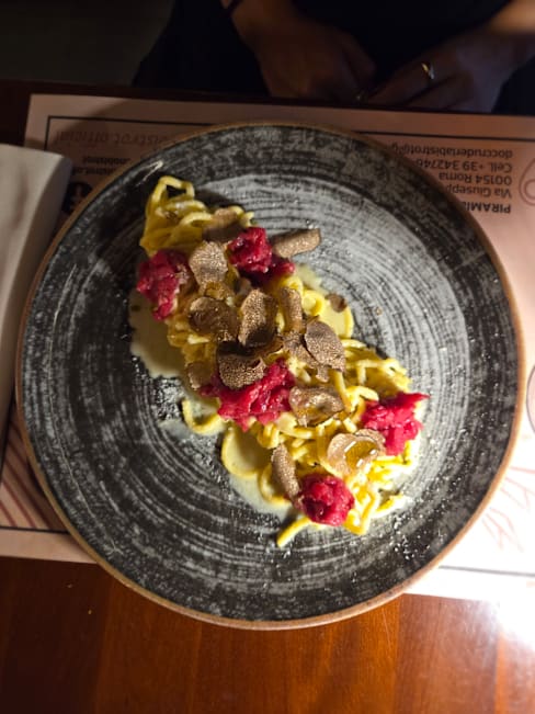 10/10+1We are looking for a great restaurant during our stay in Rome so we search and this restaurant was number 2 in ratings in TripAdvisor so we have ot a try and true enough there is a reason why it is top rated. The food and the service was exceptional we end up going two nights in a row. Everything that we tried was delicious and Daniel made some great wine recommendations to go with our meal. Pure deliciousness the burrata and focaccia bread was a perfect starter, we ordrered risotto with truffles, steak and Casio y Pepe pasta, carbonara and it was superb! For desert the lemon tart and tiramisu was yummy! Definitely a place we would recommend and will definitely dine again here when in Rome! Thanks to the amazing staff and chef!
