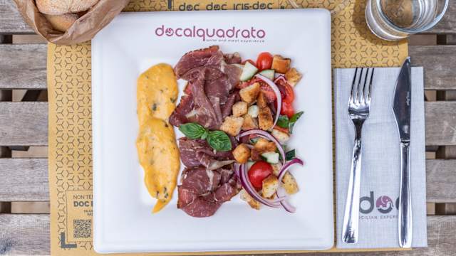 - Selezione di 4 salumi e 4 formaggi siciliani scelti accompagnato da conserve e confetture homemade e bruschette dello chef
