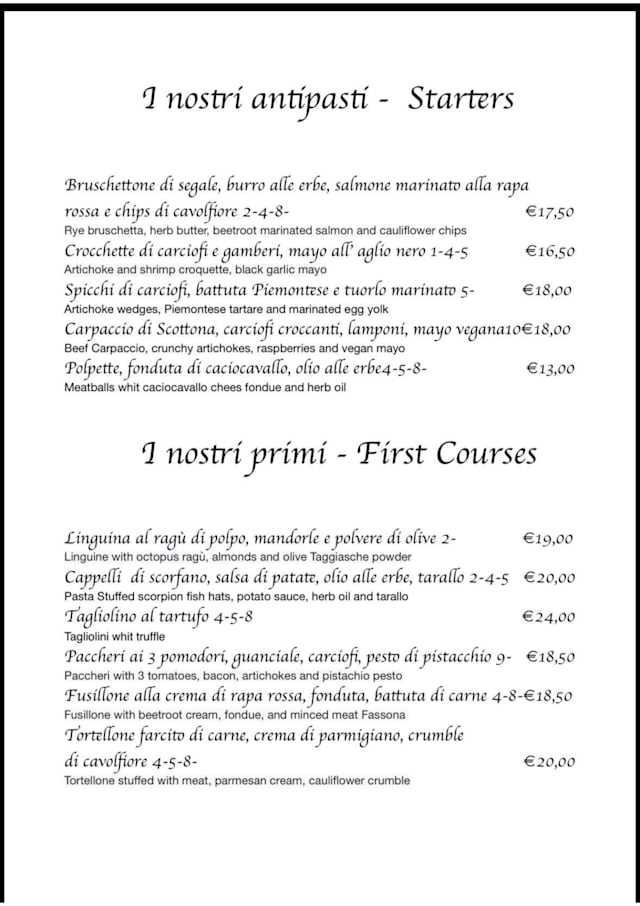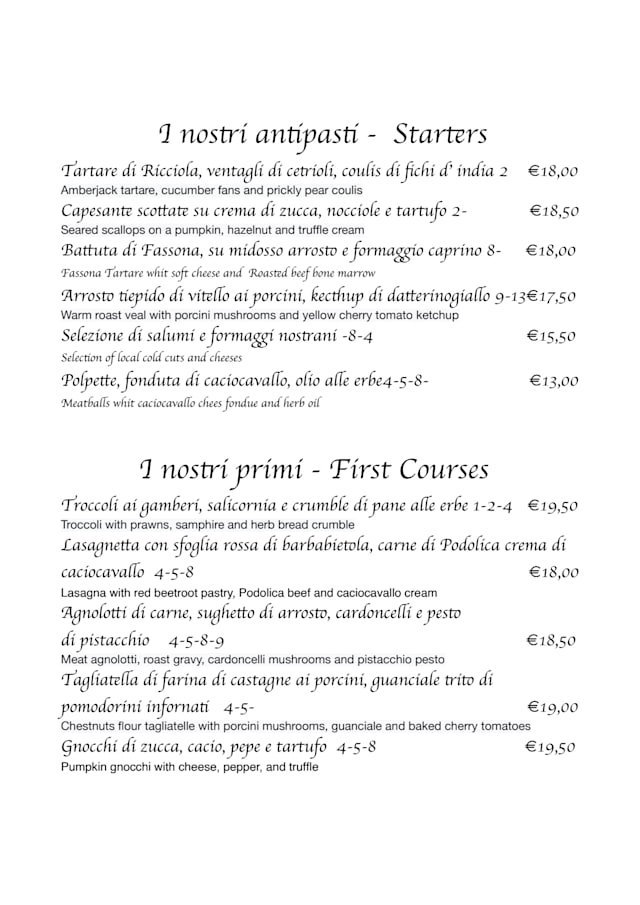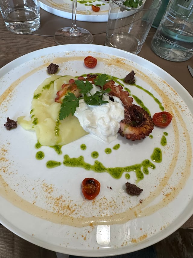 9.5/10We arrived early and the waitress showed us to our table. She recommended a local starters which were delicious. My daughter ordered steak which was amazing. The waitress told us they select their own meat. I had the swordfish pasta which was out of this world, the courgette flowers were a great addition to the dish. My husband had the octopus pasta and that was also delicious. My other daughter had the orrichette which I also tried and it too was amazing. I would definitely recommend DoCibus as every mouthful was delicious.