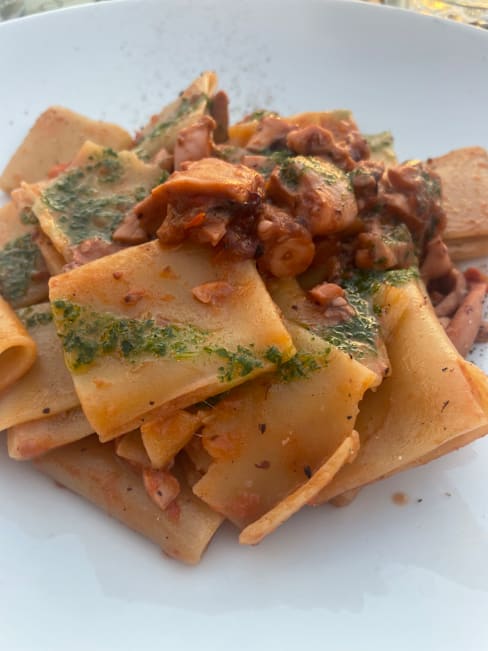 10/10We had a great evening and saw the sunset in the quiet harbour restaurant. The dishes were excellent ! The kids enjoyed Tortelli all ragu and Spaghetti vongole, which were delicious. Octopus on chickpea cream was juicy and tender and also the Vermentino by glass was special.