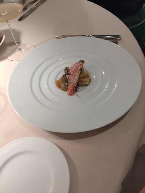 9.5/10+5The restaurant was a little tricky to find (to the right of where you enter the palace), but once inside everything was smooth sailing. We thought we would go with the 5 course menu because we always end up overstuffed with tasting menus. At the last minute we decided to go with the 7 course menu and we were glad we did, since it ended up being a perfect amount of food. The dishes weren't overly complicated and instead let the main fresh ingredients shine, which we appreciated. One of our favorite parts of the meal, were the wine pairings. All the wines were delicious and fit the menu perfectly. The only slightly negative thing I could say about the experience was that the restaurant itself was kind of plain looking and didn't quite fit the splendor of the area around it (palace). That being said, the views from the terrace were absolutely beautiful and made up for the simplicity of the inside.